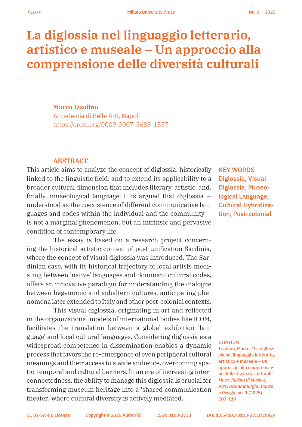 This article aims to analyze the concept of diglossia, historically linked to the linguistic field, and to extend its applicability to a broader cultural dimension that includes literary, artistic, and, finally, museological language. It is argued that diglossia — understood as the coexistence of different communicative languages and codes within the individual and the community — is not a marginal phenomenon, but an intrinsic and pervasive condition of contemporary life.
