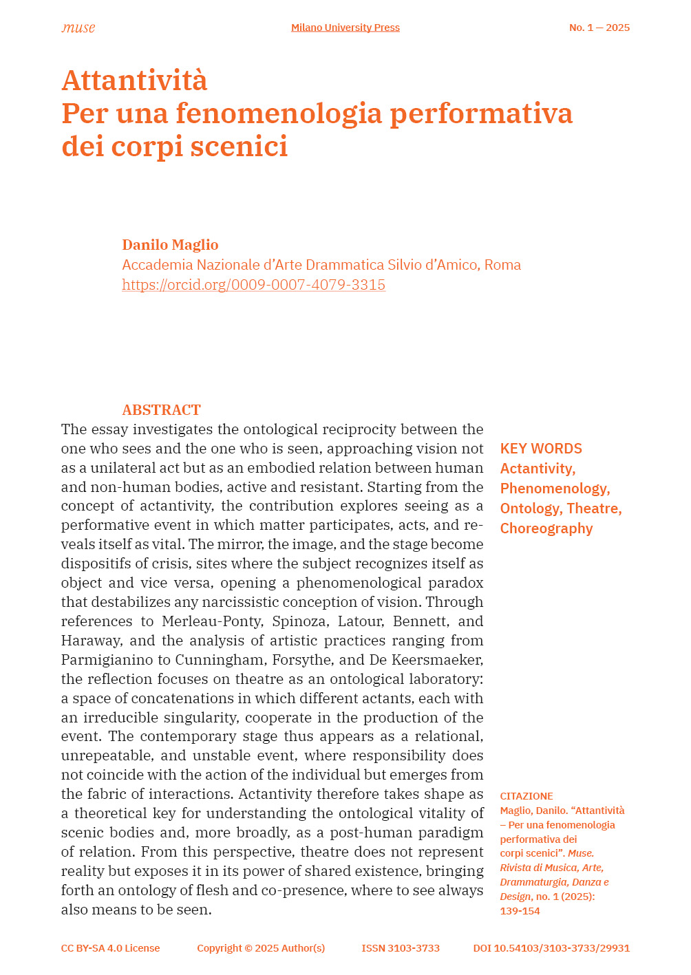 Attantività – Per una fenomenologia performativa dei corpi scenici